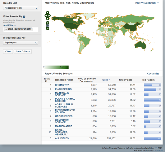 動靜新聞客戶端:貴州大學社會科學總論學科入圍ESI全球排名前1%,實現人文社科領域零突破